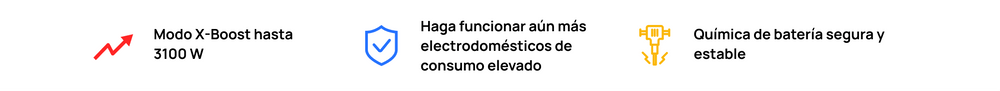 El DELTA 2 Max alimenta casi todos los dispositivos que necesite con una gran potencia de CA de 2400 W. Además, con la tecnología patentada X-Boost, podrá utilizar dispositivos con una potencia de hasta 3100 W. En comparación con otras estaciones de energía, el DELTA 2 Max puede alimentar más dispositivos, evitando al mismo tiempo la sobrecarga y el sobrecalentamiento.