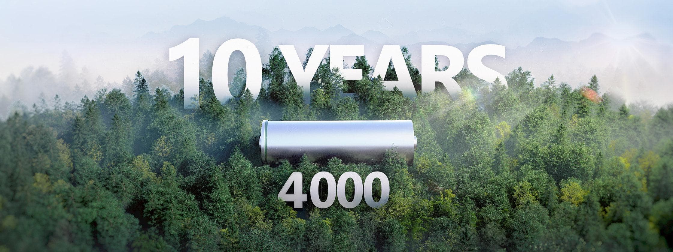 Gracias a la química de la batería LFP, la batería extra inteligente DELTA 3 tiene una vida útil de 4000 ciclos completos hasta el 80% de su capacidad. Obtendrás prácticamente 10 años de energía, incluso si la usas todos los días. Eso es 6 veces más largo que otras estaciones de energía con una capacidad y potencia similar.