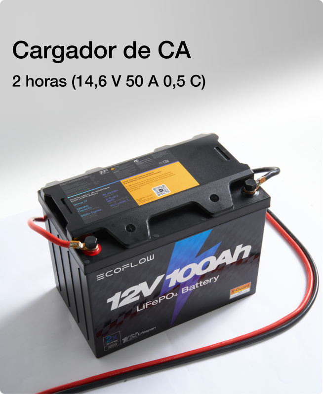 Cargue la batería de 12 V de LFP con energía solar, un generador o la red eléctrica, de modo que siempre haya una opción, sin importar dónde se encuentre. Cargue por completo en 2 horas, 6 veces más rápido que las baterías de plomo-ácido.