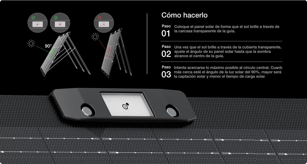 Mantiene la luz solar en un ángulo de 90° sobre la superficie del panel solar para capturar la mayor cantidad de energía posible.
