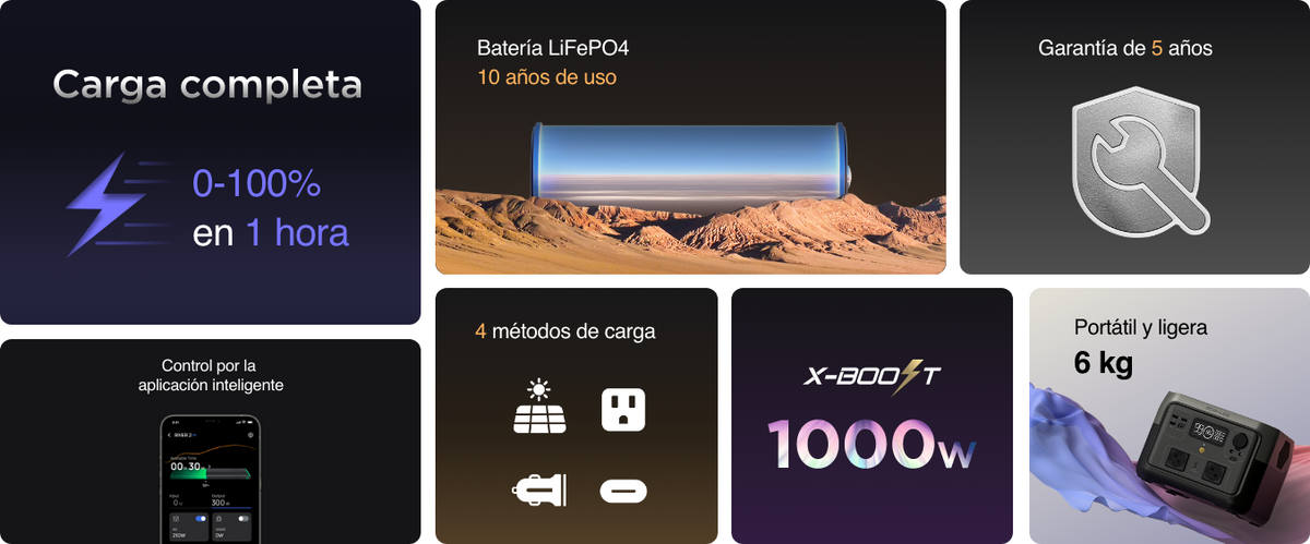 •La salida X-Boost hasta 1000 W hace funcionar el 80% de los aparatos electrónicos de consumo.