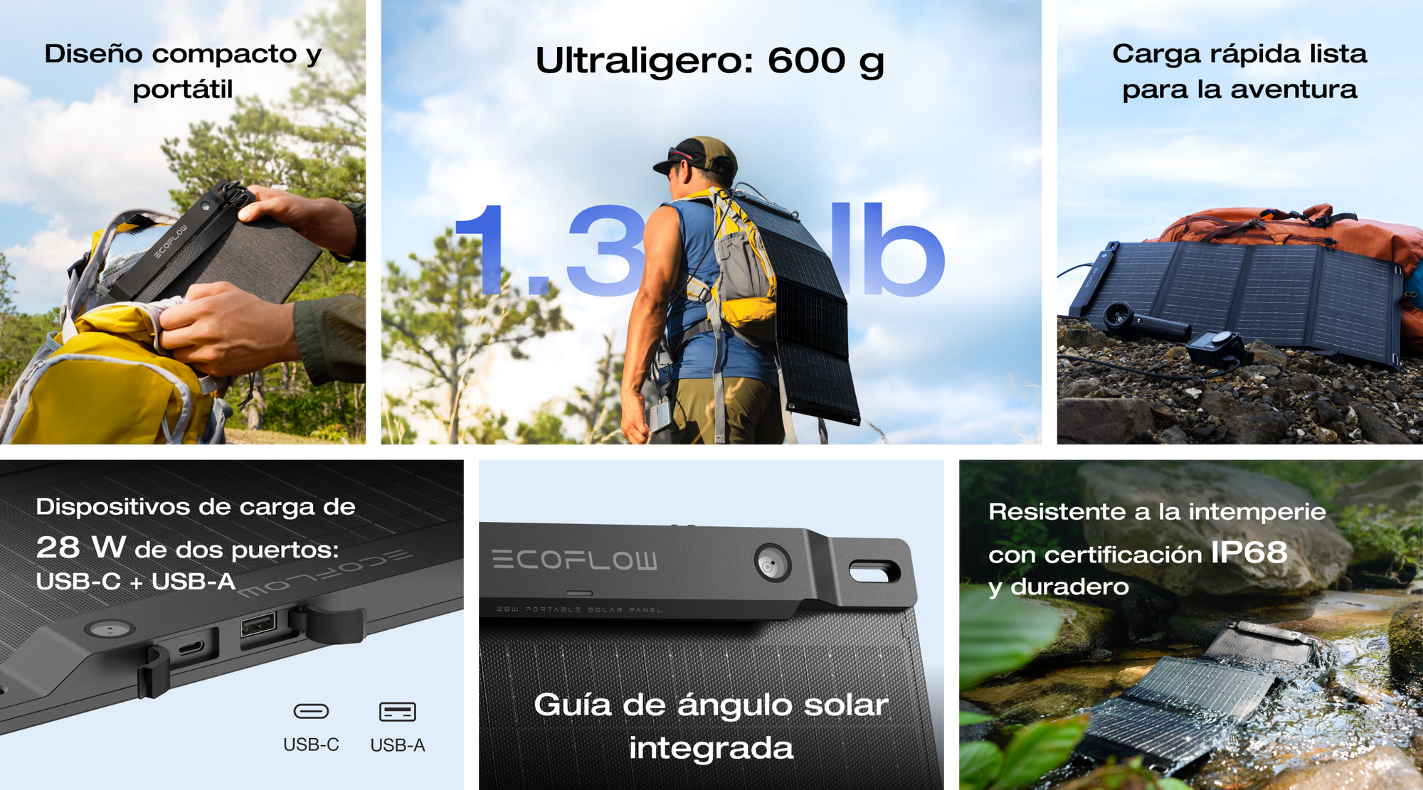 Especificaciones del panel solar portátil EcoFlow de 28 W