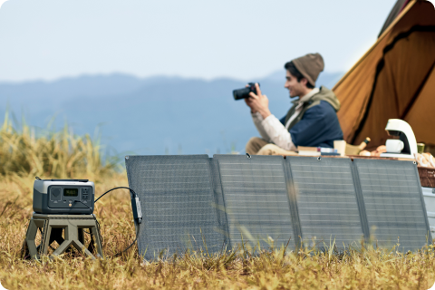 Un generador solar almacena la electricidad generada por los paneles solares conectados, que absorben la luz solar y la convierten en corriente continua (CC). Siempre y cuando estén expuestos a la luz solar, los paneles pueden generar energía, que puede utilizarse para hacer funcionar sus dispositivos y electrodomésticos. Se suele creer erróneamente que los generadores solares necesitan luz solar para funcionar. Sin embargo, pueden seguir absorbiendo la luz incluso en días nublados.