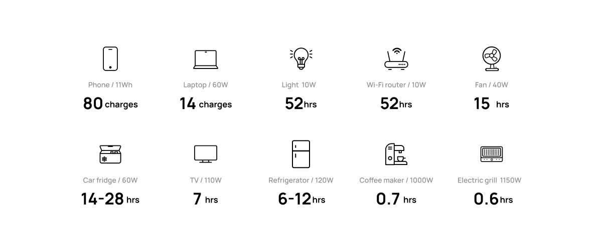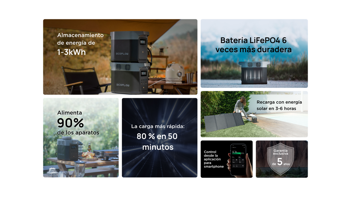 EcoFlow DELTA 2 no es solo una batería. Le da seguridad energética a tu hogar y te proporciona energía almacenada que puedes llevar a cualquier parte para alimentar prácticamente cualquier aparato. Todo con un diseño portátil y práctico. Ideal para el respaldo de energía doméstico, en casas rodantes, campamentos o cuando sea que estés fuera de casa.