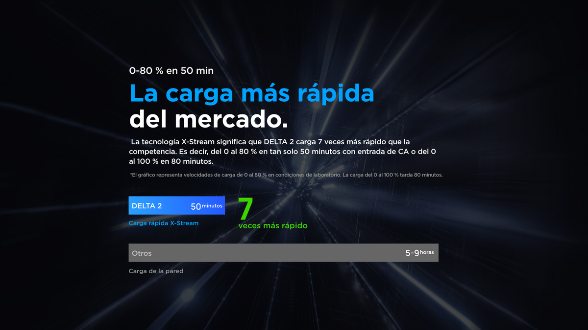 Conecta paneles solares portátiles y obtén una potencia de entrada de hasta 500 W para cargar desde cualquier lugar en tan solo 3 horas.