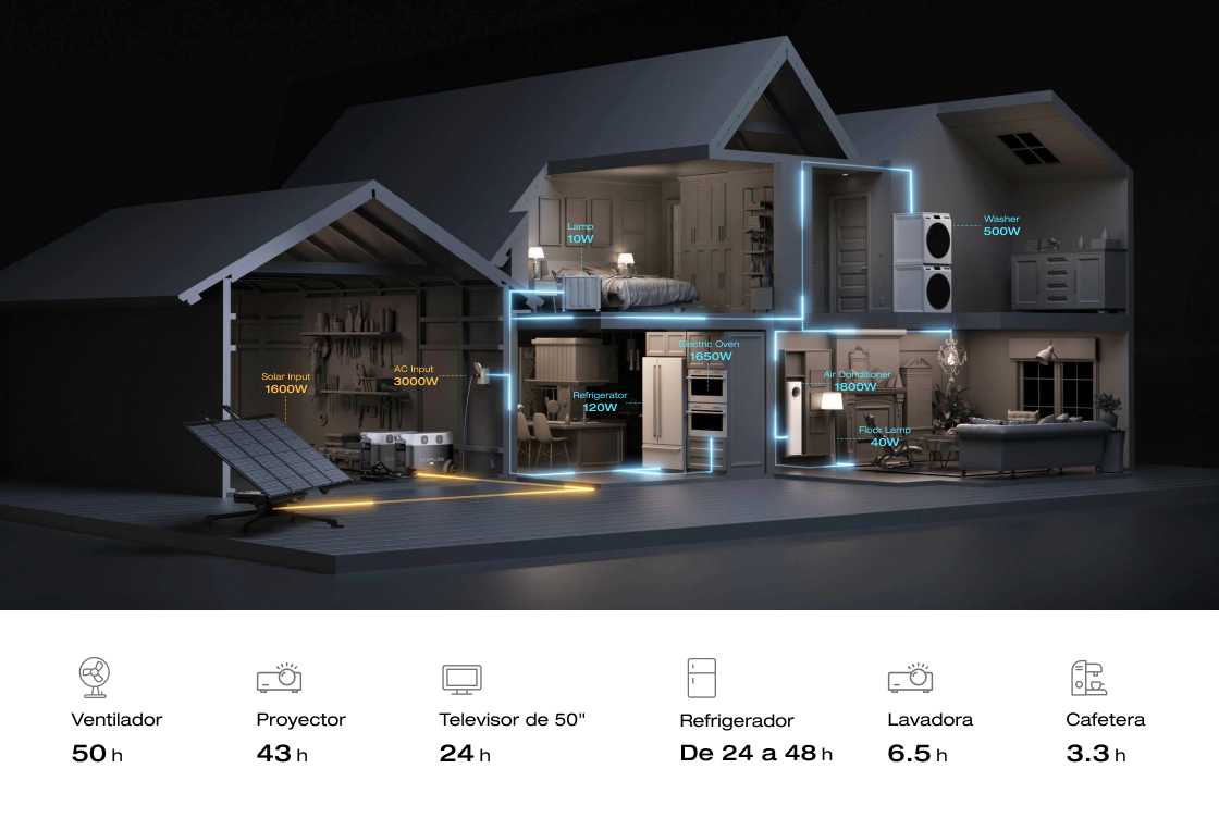 • Alimenta el 99 % de los electrodomésticos, incluidos aires acondicionados y calefactores