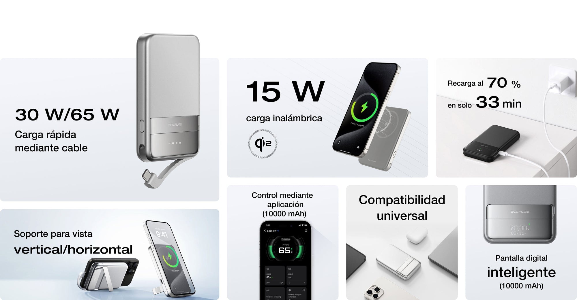 EcoFlow RAPID combina un diseño elegante y practicidad. Altamente magnético y antideslizante, lo que garantiza un buen agarre durante su uso y una reducción del movimiento. Gracias a su soporte incorporado se puede usar sin manos y también se puede utilizar apoyada sobre un escritorio.