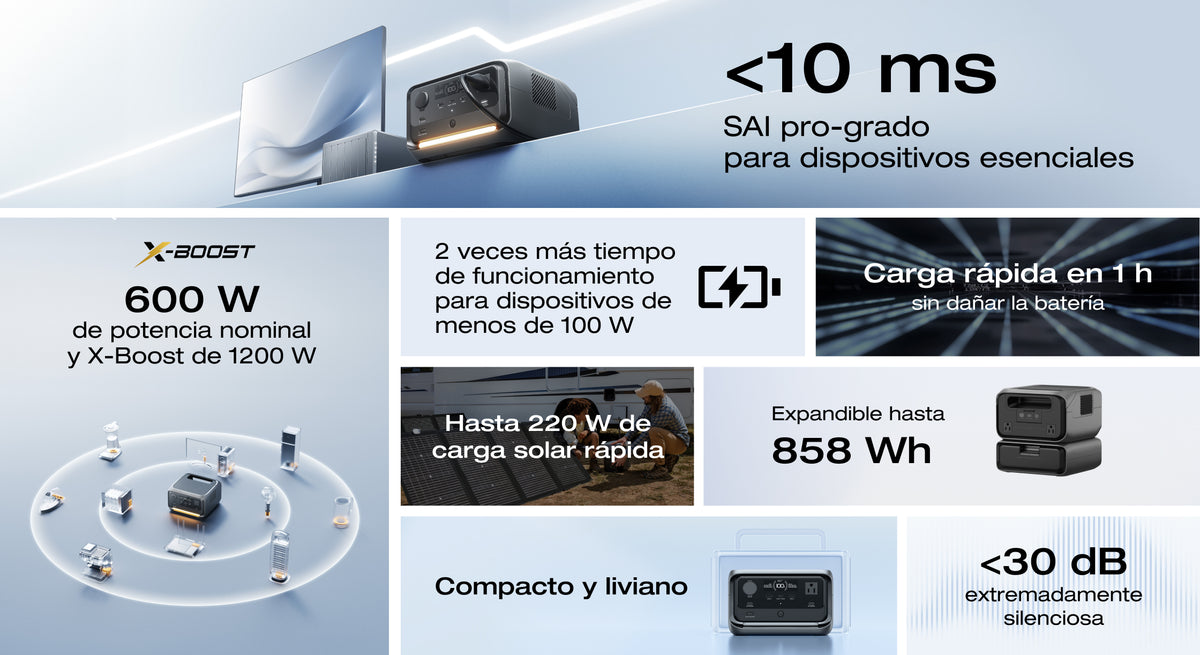 Capacidad de 554 Wh | Salida de 600 W | X-Boost de 1200 W