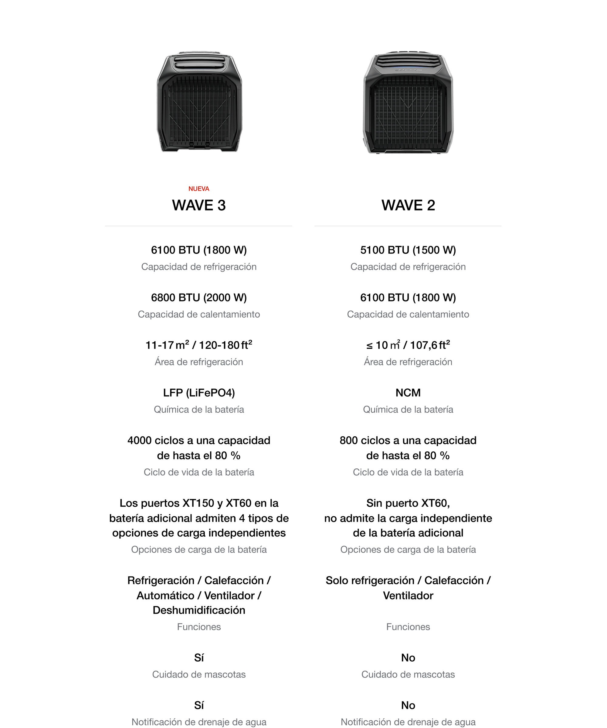 Especificaciones - Batería adicional del EcoFlow WAVE 3